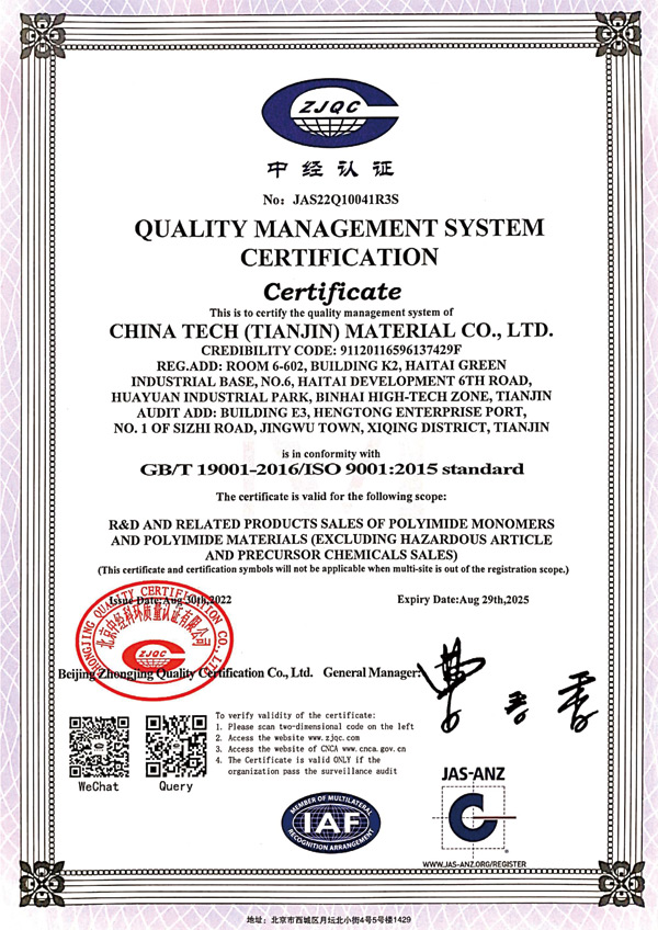 天津眾泰材料科技有限公司(以下簡稱“眾泰”),是一家“以先進功能性聚酰亞胺單體研發生產為核心,致力于推動全球聚酰亞胺材料產業發展”為使命的創新型高新技術企業。眾泰研制的聚酰亞胺單體目前已廣泛應用于無色透明柔性聚酰亞胺薄膜、柔性顯示材料、5G新材料等諸多高科技領域產品的生產。